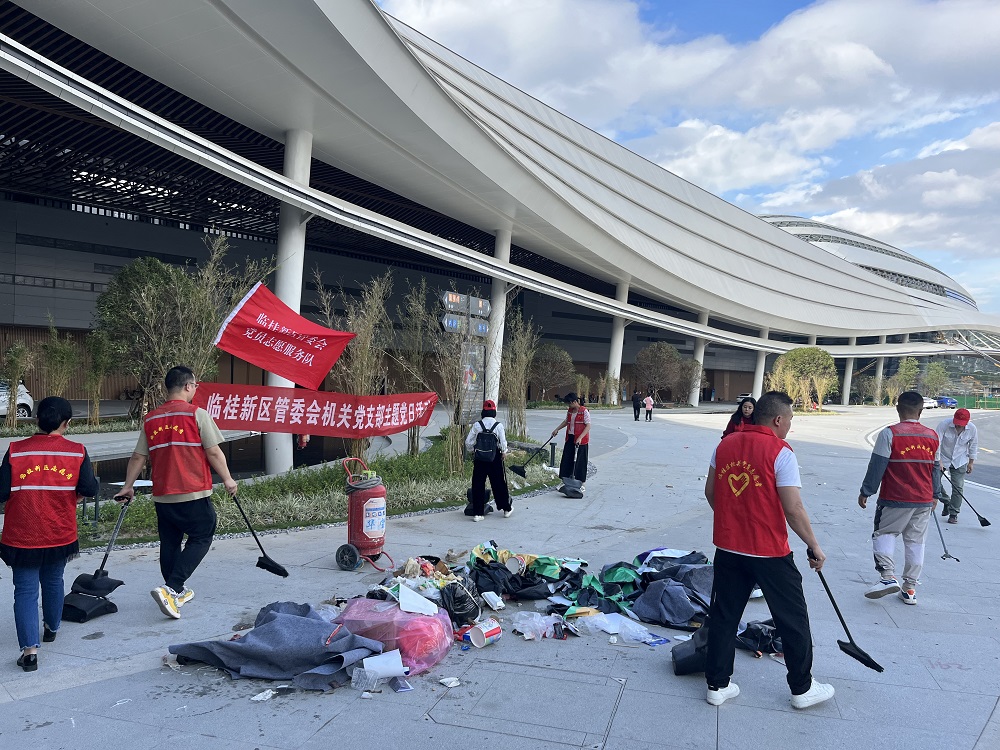 临桂新区党员志愿者在桂林国际会展中心开展清扫活动