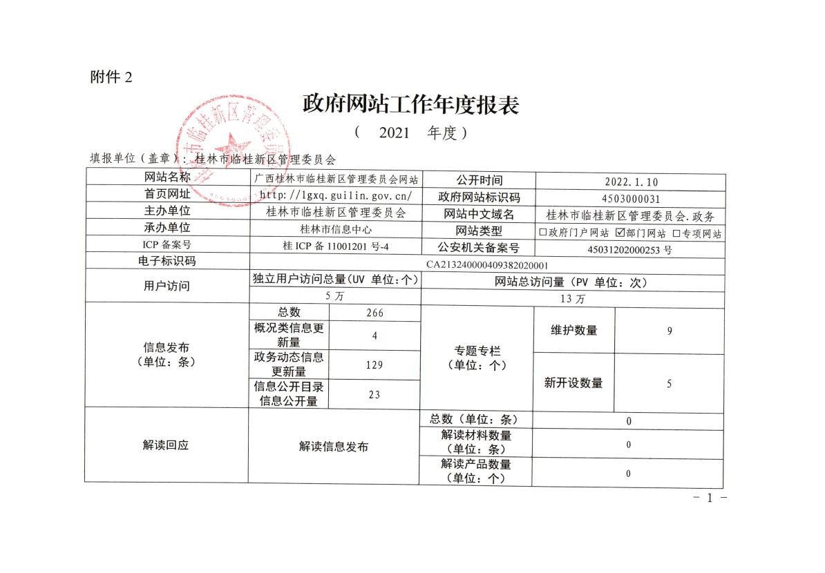 桂林市临桂新区管理委员会2021年政府网站工作年度报表