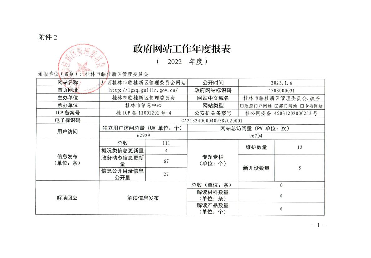 桂林市临桂新区管理委员会2022年政府网站工作年度报表