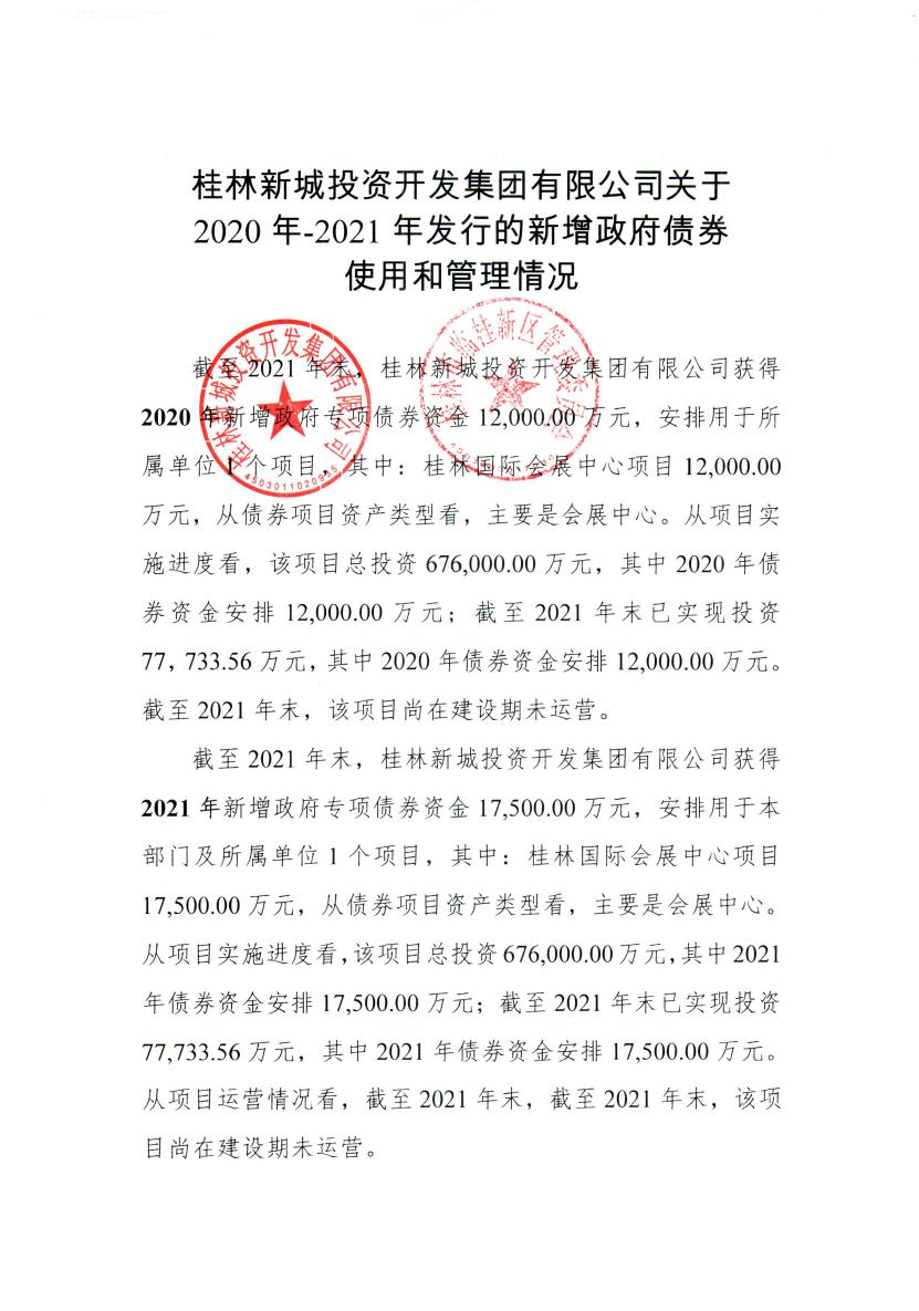 关于2020年-2021年发行的新增政府债券使用和管理情况