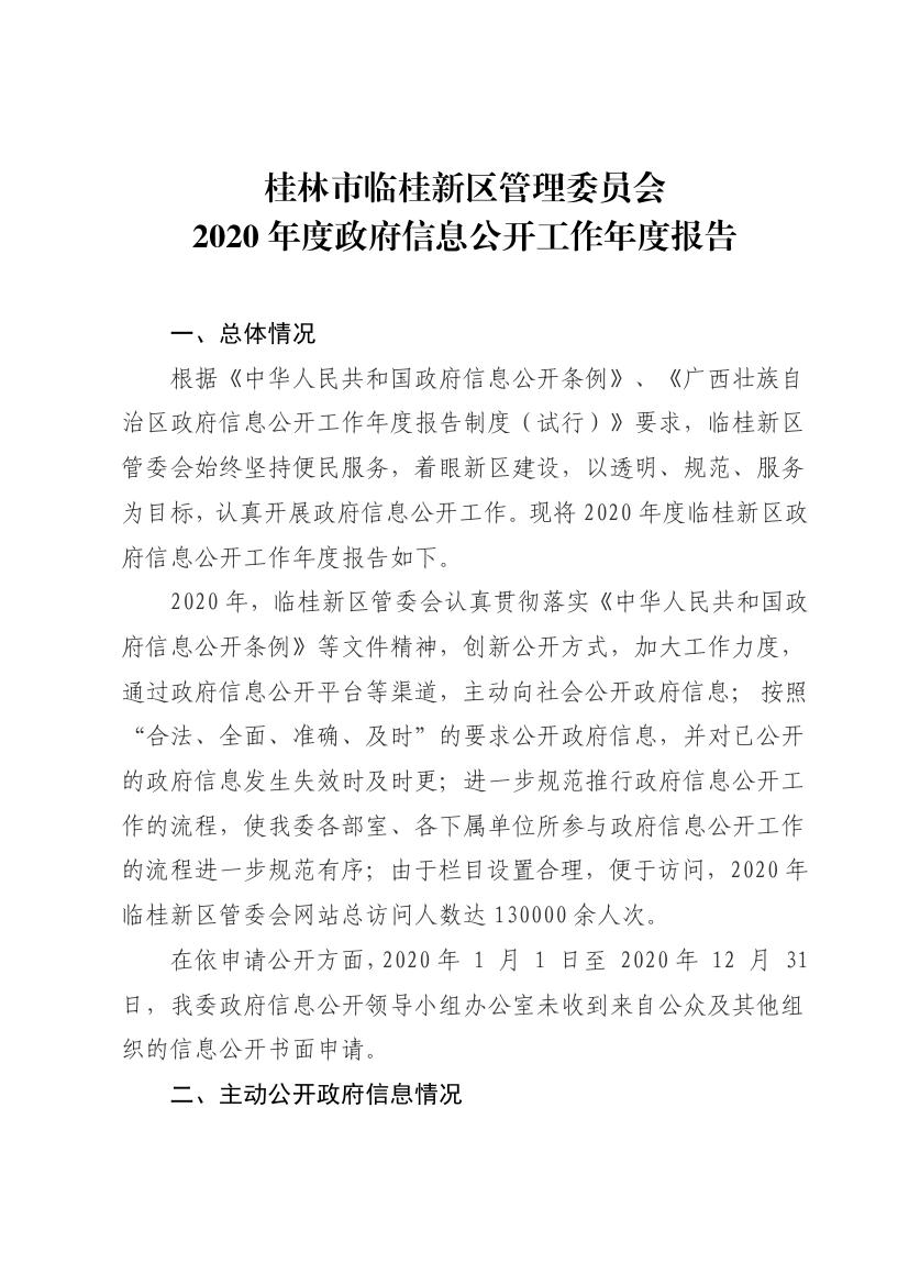桂林市临桂新区管理委员会2020年政府信息公开工作年度报告