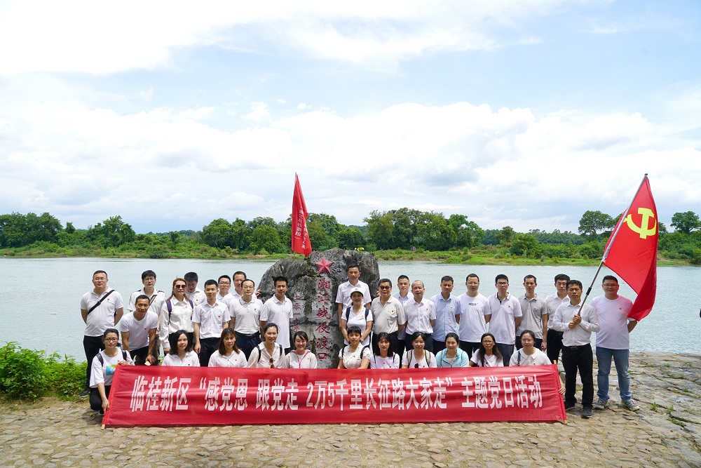 6月15日,临桂新区全体党员赴全州开展了“传承红色基因 弘扬革命精神”主题党日活动,通过开展“打卡红色教育基地”、“二万五千里长征路大家走”、 “入党誓词大家宣”、“红色歌曲大家唱”等活动推动党史学习教育走深走实。