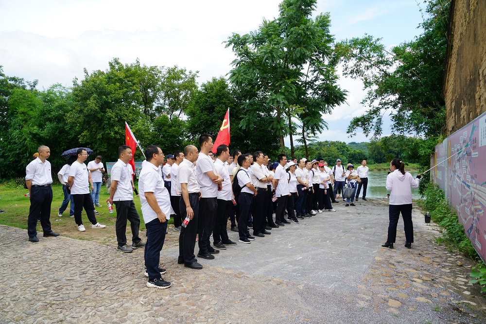 全体党员沿着凤凰嘴渡口处的湘江沿岸,重走了一段红军突破湘江最为惨烈的长征路,并上了一堂现场教学课,讲解员向党员讲述了当年红军在这里付出了极其惨烈的牺牲,中央红军兵力折损过半的悲壮历史。红军战士的鲜血染红了江面,密密麻麻的牺牲战士遗体被冲到10多里外的河湾,经此一役当地“三年不饮湘江水,十年不吃湘江鱼”。大家在了解湘江战役历史的同时,无不被红军先烈为了中国革命的胜利而英勇战斗、敢于牺牲、顾全大局、纪律严明、服从指挥的精神而感动。