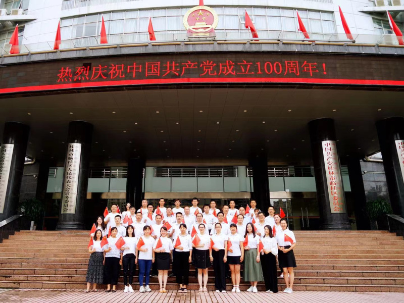 7月1日,临桂新区工委组织党员干部职工集中收看建党百年庆祝大会、开展党员过“政治生日”等系列活动,欢庆中国共产党百年华诞。