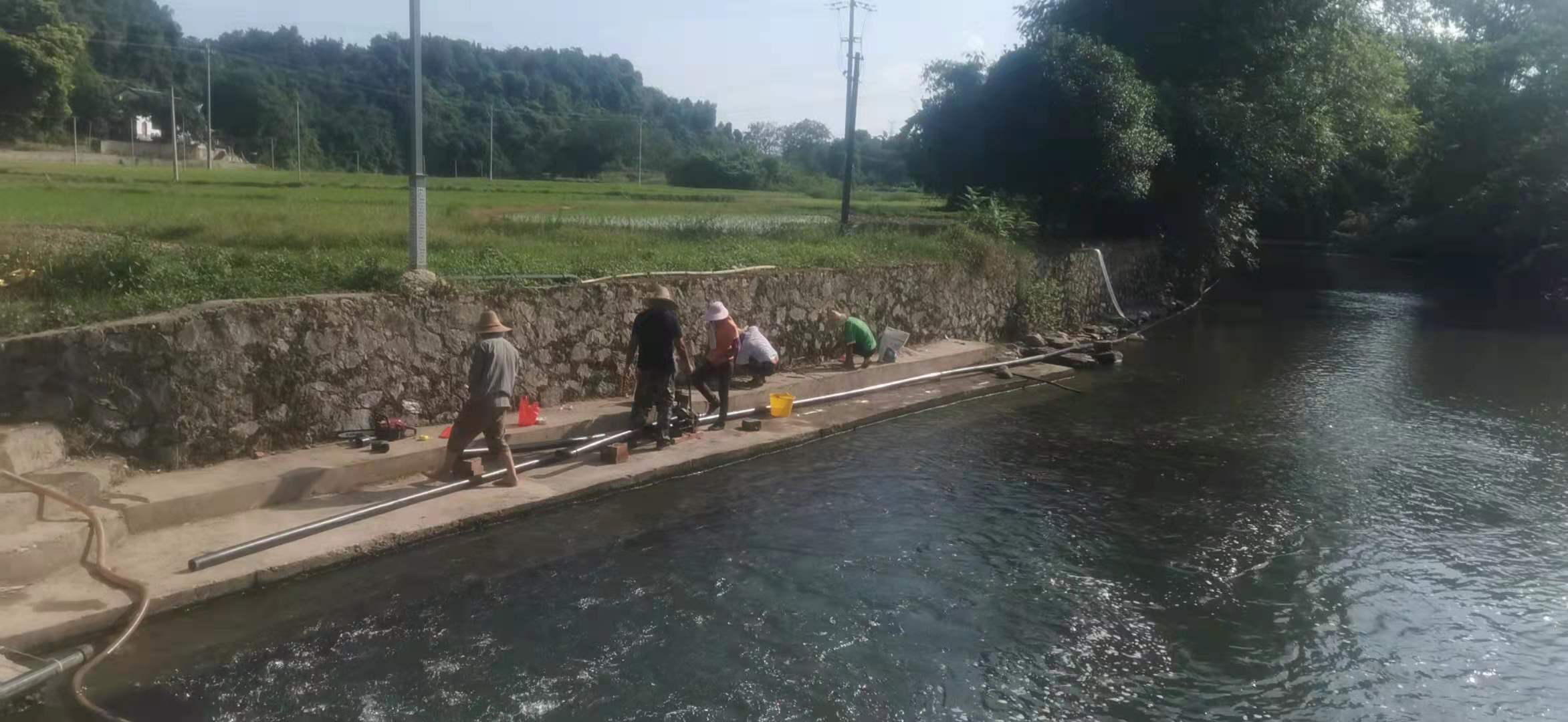 施工人员正在进行罗江村村民饮用水管安装